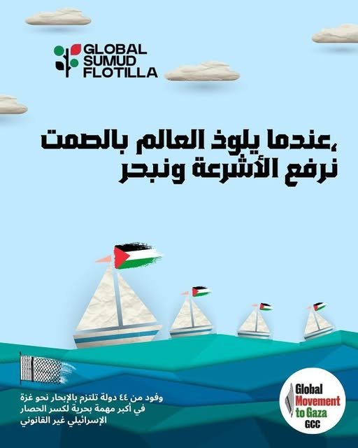 31 أغسطس 2025: انطلقت اليوم أولى طلائع أسطول الصمود العالمي المبحر لكسر الحصار. فنانون وممثلون وسياسيون ومؤثرون ونشطاء انطلقوا من برشلونة، في مهمة إنسانية سلمية، لا يمثلون فيها حكوماتهم ولا دولهم، بل يمثلون أنفسهم ، في أكبر محاولة بحرية حتى الآن لكسر الحصار ، وضد سياسة الابادة والتجويع الممنهجة.عدد الجنسيات المشاركة تجاوزت 44 دولة، ومن بين المشاركين عرب ومسلمون. اليوم من يتخلف عن دعم هذه القافلة وأهدافها النبيلة، خاسر لا محالة، والدول التي تضيق الخناق على مواطنيها لن يكون لها نصيب من هذا الفخر العالمي.