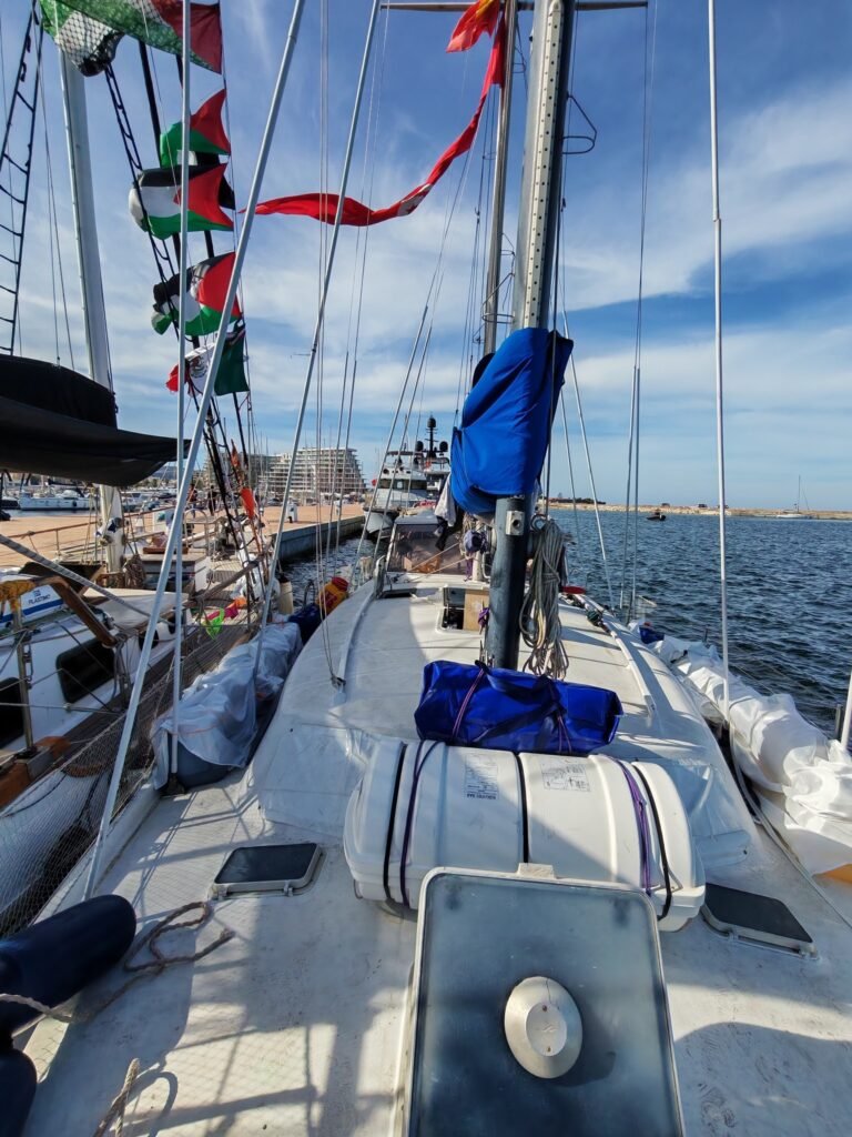 السفينة ( فاميلي) الإسبانية تتعرض للضرب بمسيرة أثناء رسوها في ميناء سيدي بوسعيد. التقطتُ هذه الصورة للسفينة أول أمس ونحن نقترب منها ونحيي راكبيها.