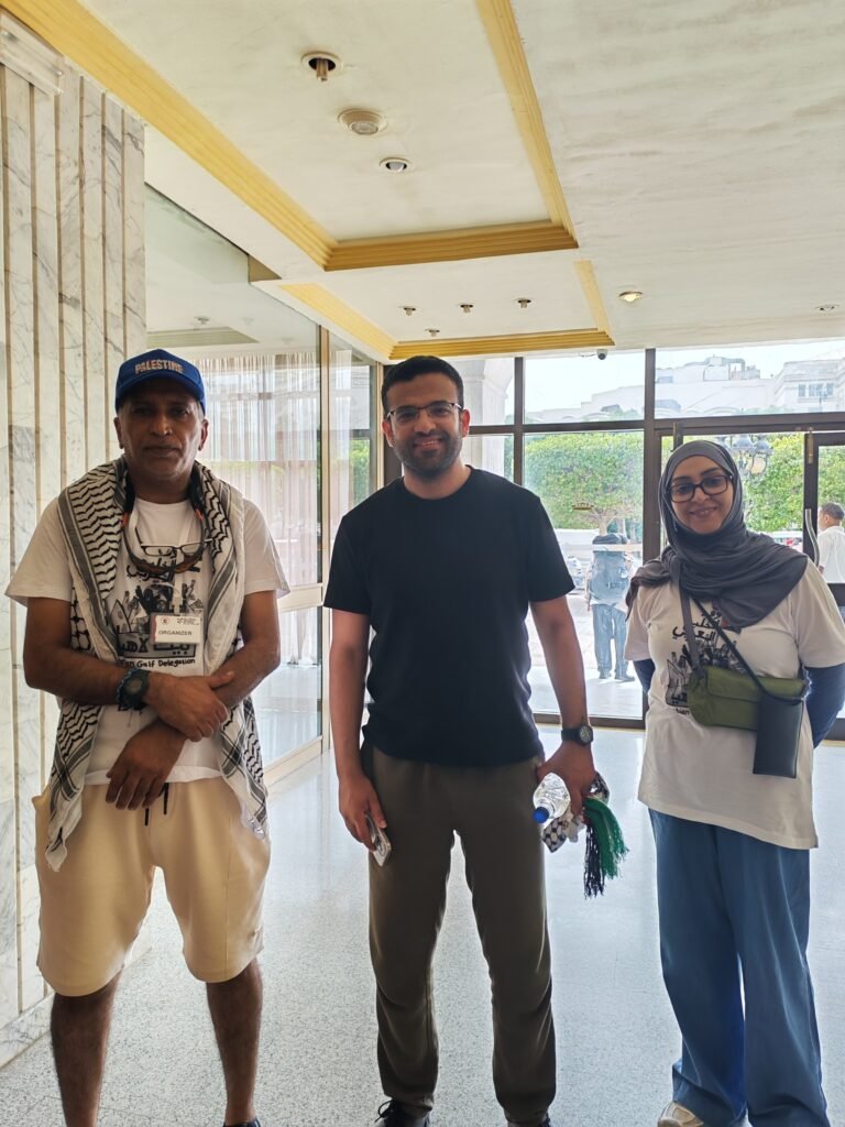 وصلنا إلى تونس بتاريخ ٣١ اغسطس، خضنا خلالها ورش وتدريبات متعددة في جوانب السلامة والأمن والاعلام والتوعية النفسية، والأهم من ذلك التأكيد يوما وراء يوم على ان المهمة سلمية، لا تهدف للعنف، وأن الهدف الأساس هو فتح ممر للمساعدات الإنسانية عبر الابحار في المياه الدولية وهو أمر قانوني لإيصال المساعدات. خلال هذه الفترة جمعتنا الصداقة والمحبة بشخصيات لم نعرفها لكن غزة وحدت دروبنا وستجمعها مرارا وتكرارا. مر علينا الدكتور علي رزق مسلّما وهو ابن خانيوس ليشد على عزيمتنا، والتقينا الإعلامية المتميزة إسراء الشيخ وهي تنتقل من ميناء لآخر لتغطية أخبار المبحرين من كل الجنسيات.