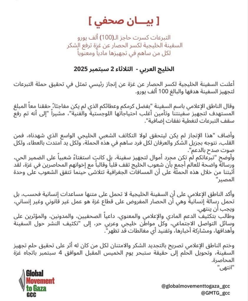 عن السفينة الخليجية المشاركة ضمن وفد أسطول الصمود العالمي :