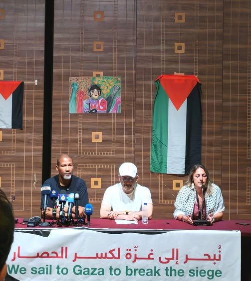 أعضاء الوفدين الجزائري والمغربي 🇩🇿🇲🇦 ضمن أسطول الصمود العالمي